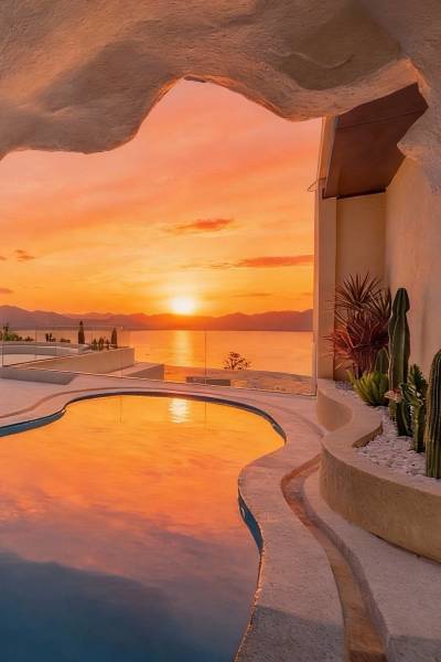 悬崖海景泳池晚霞,独享入户花园私汤