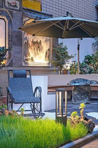 享绿植环绕庭院,观锦鲤鱼池