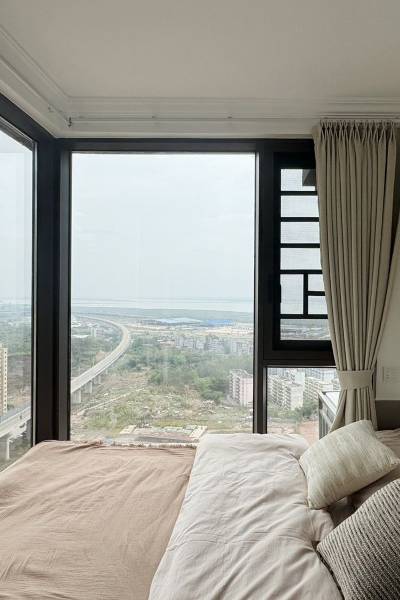床品柔软舒适,城市景观映入眼帘