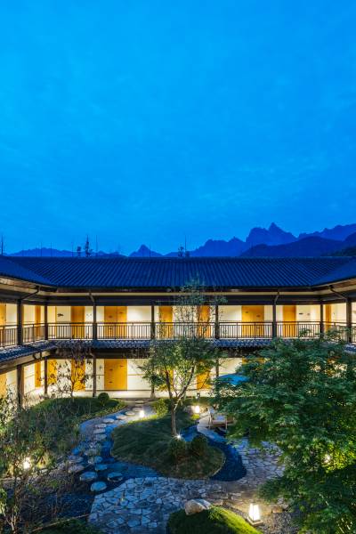 九华山下中式与现代结合的庭院雅筑