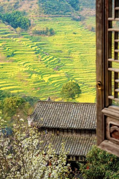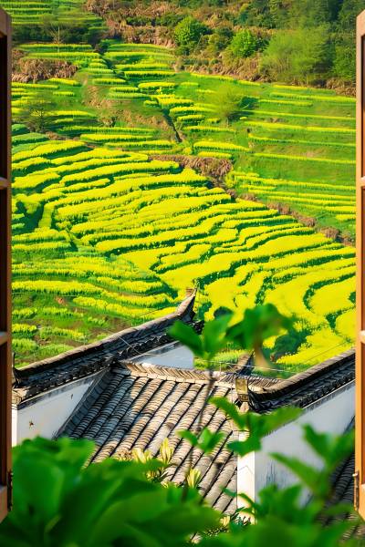 推窗入画静赏无边油菜花海美景